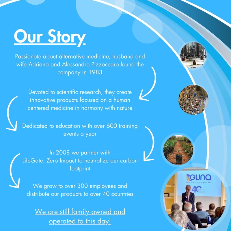 • GUNA's products are inspired by studies of molecular biology and biochemistry performed on medicinal plants and on biological molecules. These studies demonstrate that low doses of active ingredients prepared according to an exclusive proprietary pharmaceutical technology are as effective as higher doses, but with a low risk of negative side effects.