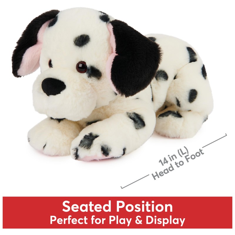 - REALISTIC DALMATIAN PUPPY: Checkers is a 14” realistic Dalmatian with soft white spotted plush, black ears, and warm brown eyes. This lounging lap dog relaxes outstretched and looking ready to snuggle. Perfect for dog parents and collectors alike!