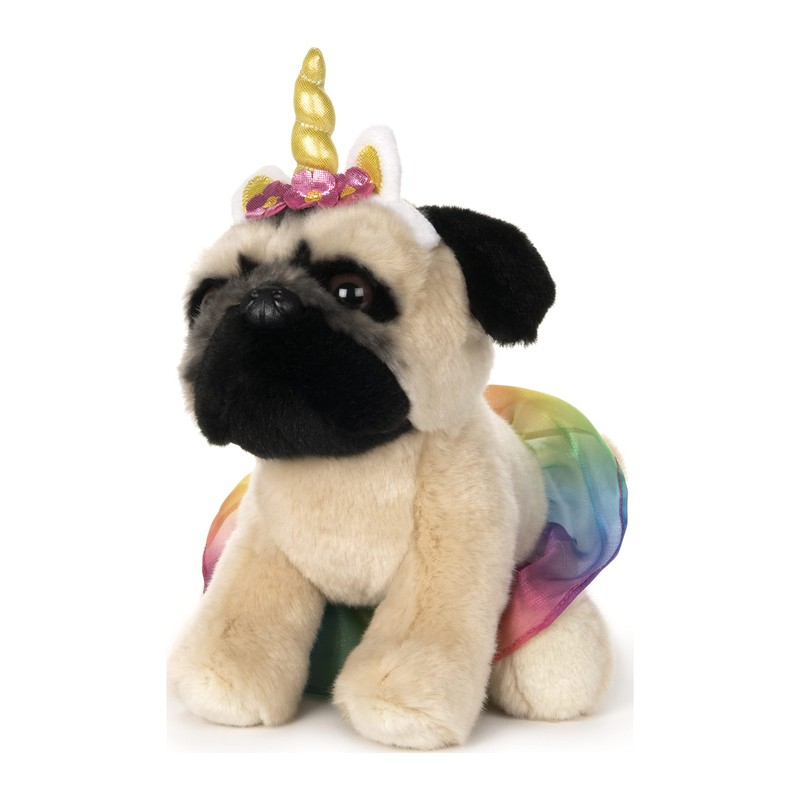 - DOUG THE PUG UNICORN RAINBOW TUTU OUTFIT: Doug's ready to show off his dance moves! This 9-inch plush features Doug in a cute, sheer rainbow tutu around his waist and a unicorn horn flower crown above his adorable face with accurate, lifelike details.