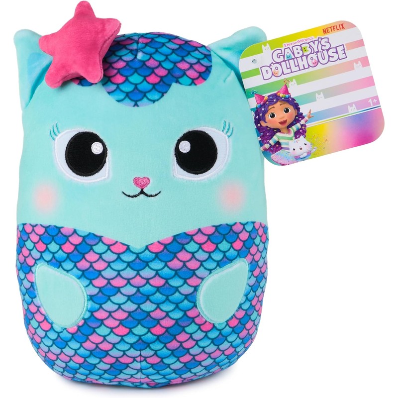 - GIFT CUDDLES: Cakey Cat, Pandy Paws, MerCat, and Kitty Fairy are all ready to join the party as satisfyingly squeezable plush Collect all and bring every Gabby’s Dollhouse adventure to life in squishy 8” and 12” sizes