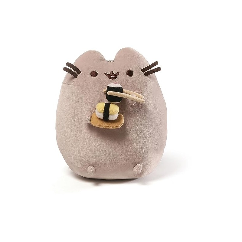 Bring home your favorite snack – and your favorite feline – with the cuddly, food-forward Snackables collection by GUND! Pusheen Snackables feature the famous tabby cat with a range of her favorite snacks, doing what she does best: being irresistibly cute and munching to her heart’s delight. This cute, super-soft 9.5” plush features Pusheen about to indulge in a delicious plate of fresh sushi, complete with soft plush chopsticks. Each Pusheen Snackables plush is designed with premium soft, surface-washable plush and ships in a protective poly bag. Appropriate for ages 8 and up. Pusheen is the sweet, lazy, plump tabby cat who loves to bring smiles and laughter to people worldwide in her popular webcomic, which is followed by over 10 million social media fans. Our collection of GUND Pusheen plush toys brings this lovable kitty and her adventures with Sloth, Stormy, Pip, Cheek, and more to your home, desk, or wherever you might want a smile. GUND Pusheen stuffed animals make adorable home décor and are the perfect gifts for cat lovers, Pusheen fans, and collectors of kawaii plush.