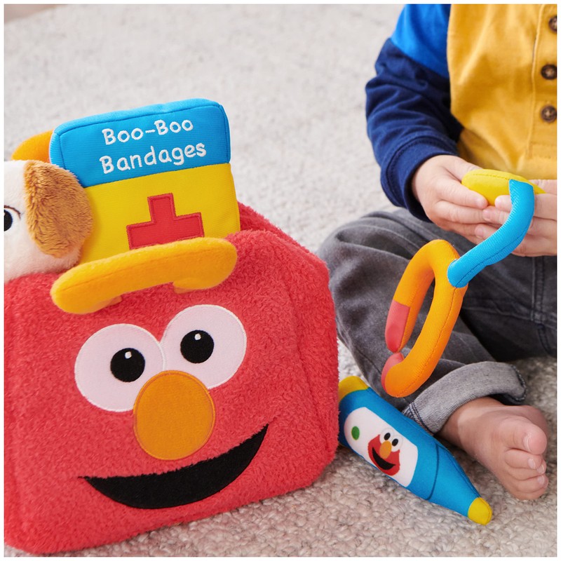 - EMO & TANGO CHECKUP PLAYSET: This playset features an 8” carrying bag that neatly stores 4 soft sensory toys designed to stimulate and entertain baby: a plush Tango squeaker, toy thermometer, a crinkling stethoscope, and a cute bandage box rattle.