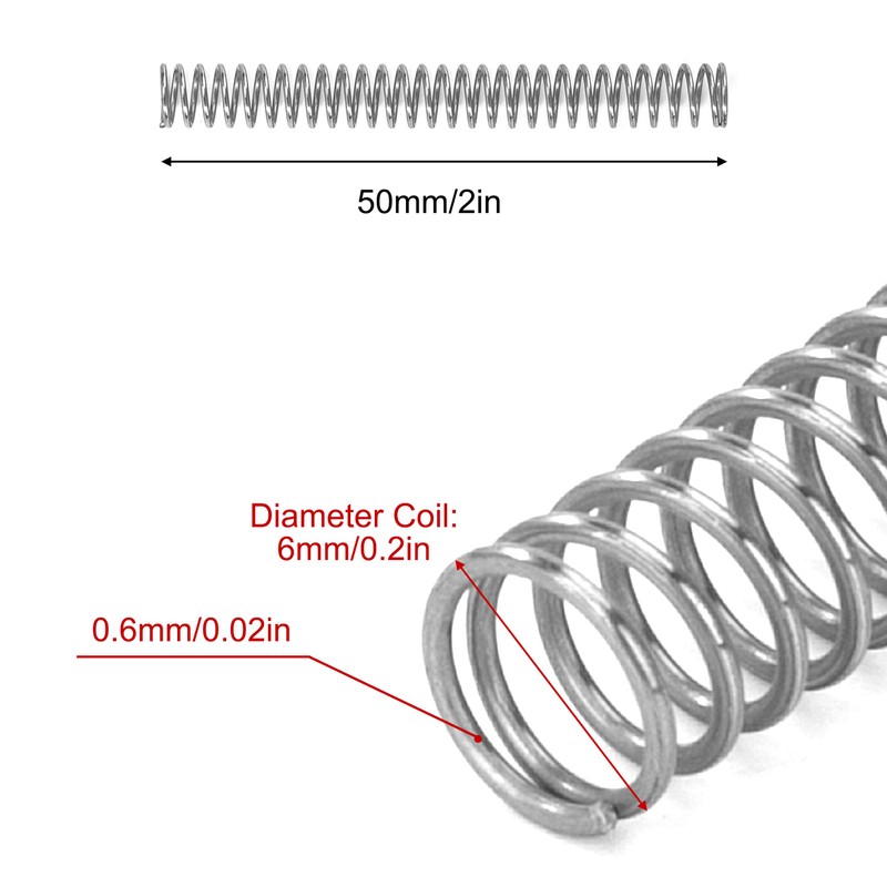 GUNGY Compression Spring Stainless Steel Spring Compression Springs 50 mm Wire Diameter 0.6 mm Outer Diameter 6 mm Length 50 mm Maximum Spring Force 0.9 kg Pack of 20