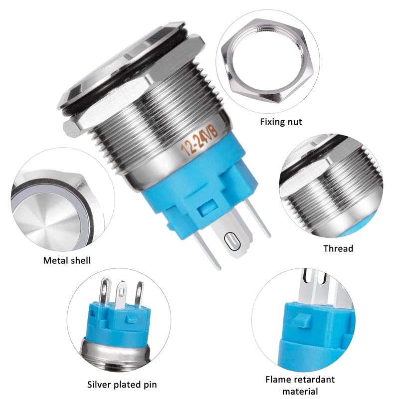 - Sturdy and Durable Our LED push button switch made of chrome plated brass with PA66 nylon base, rust and corrosion resistance, good flame retardant and insulation, stable and durable, easy to maintain.