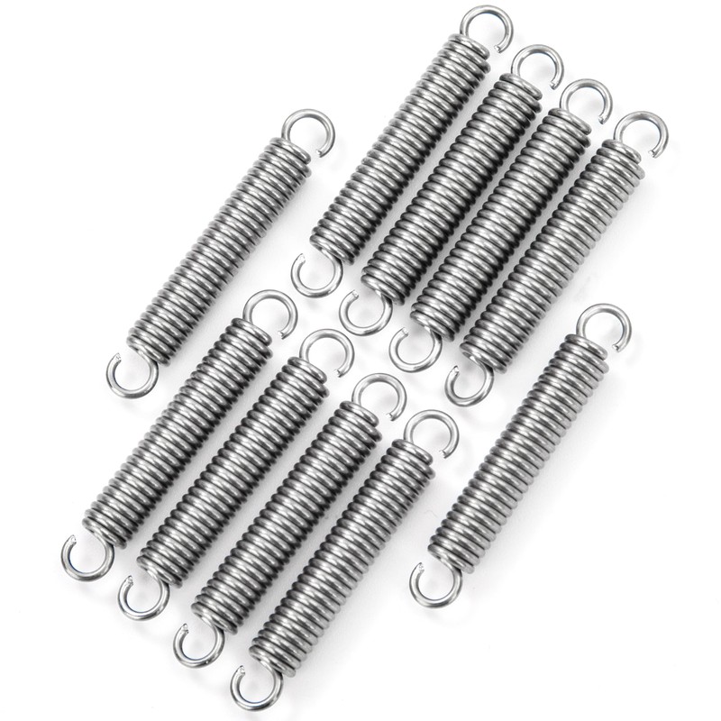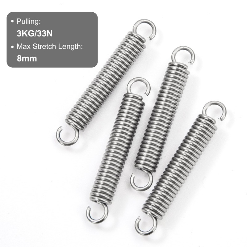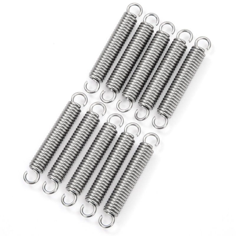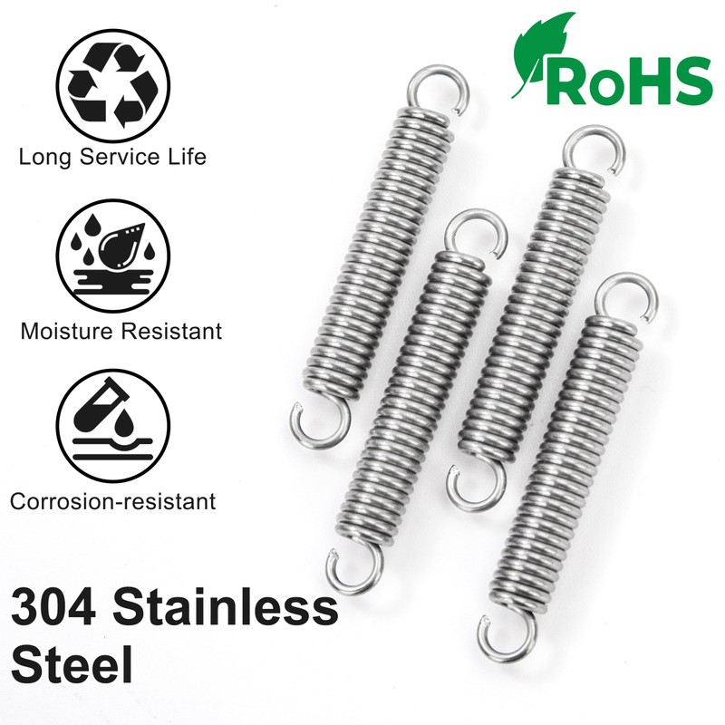 - STRONG AND ECO FRIENDLY Tension spring is made of Japan imported 304 stainless steel and complies with RoHS certification, rust and corrosion resistant, high strength and elasticity, long service life.
