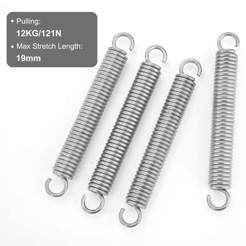 - STRONG AND ECO FRIENDLY Tension spring is made of Japan imported 304 stainless steel and complies with RoHS certification, rust and corrosion resistant, high strength and elasticity, long service life.