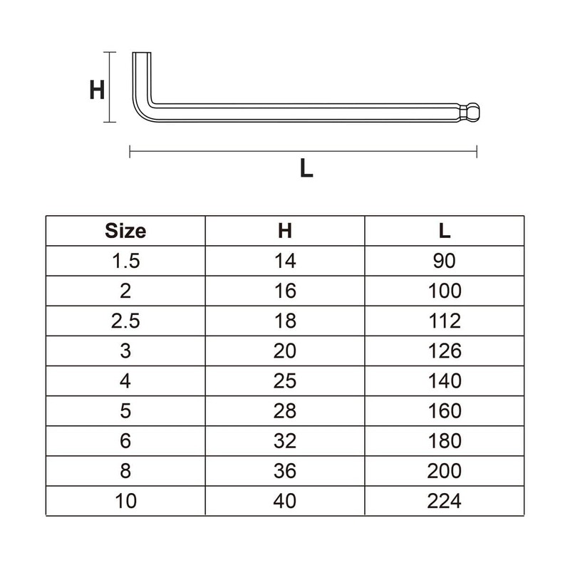 - 9 Pcs Long Arms: 1.5mm 2.0mm 2.5mm 3.0mm 4.0mm 5.0mm 6.0mm 8.0mm 10.0mm Maximum tilt angle: Approximately 25 degrees