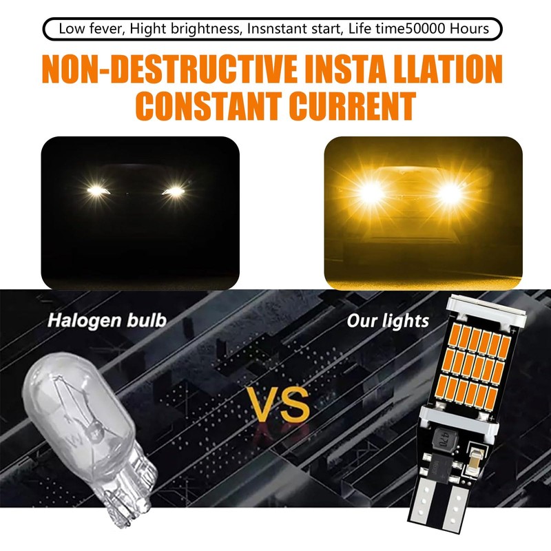 gunroil 4 Pack T15 Car LED Turn Signal Light, High Brightness Canbus Decoded Stepless Automotive Brake Light, Universal 4014 45SMD Canbus Vehicle Reversing Light Accessories (Yellow)