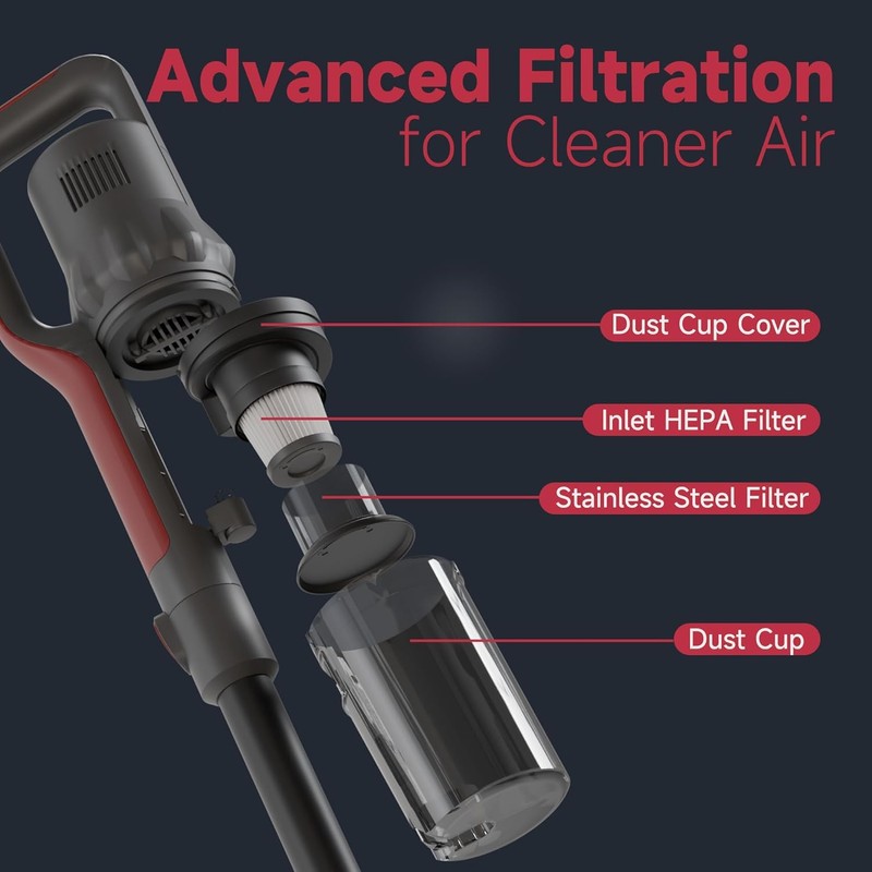 - MULTIPLE FILTRATION & LOW NOISE: This cordless vacuum features noise reduction and a multi-layer filtration system. It captures 99.99% of fine dust, making it an excellent cordless stick vacuum for promoting healthier air