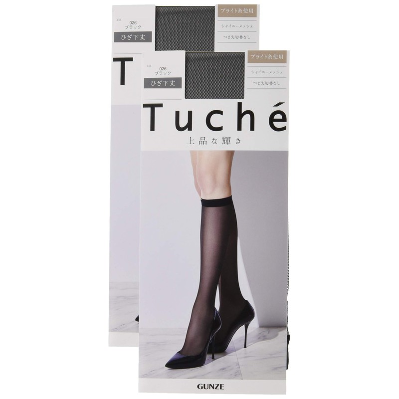 Gunze Tuche Women's Shiny Mesh Pattern, Below Knee Length, Same Color, 2 Pairs Set, Black