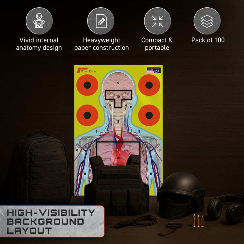 - REALISTIC DEFENSE TRAINING: With accurate human internal anatomy outlines, our shooting targets offer an immersive training experience to enhance shot accuracy and decision-making under pressure—perfect for tactical and self-defense training.