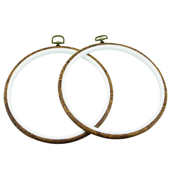 - IMITATED WOOD EMBROIDERY HOOOPS: The embroidery frame is made of flexible rubber plastic ring with metal hanging ring, which is very elastic and resistant to pressure.