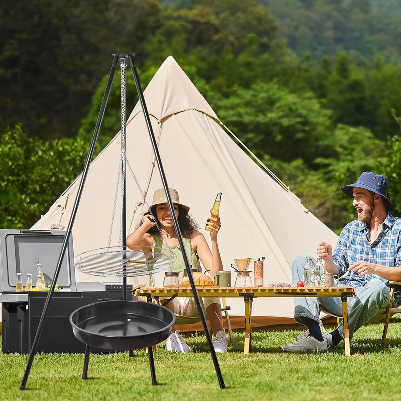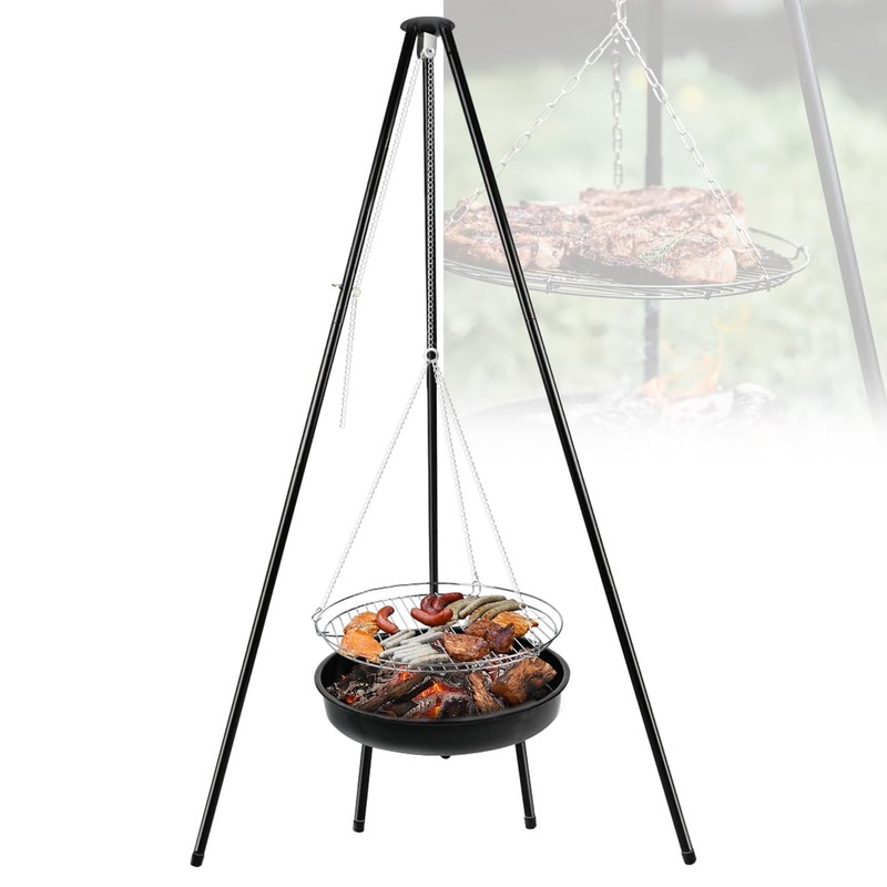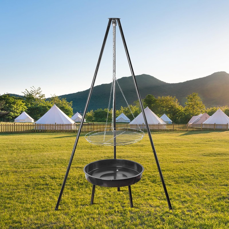 - Innovative Triangular Frame: guogiyala presents a triangular frame BBQ grill, designed for the outdoor enthusiast. Its innovative hanging system and tripod base offer a stable and enjoyable grilling experience in any outdoor setting