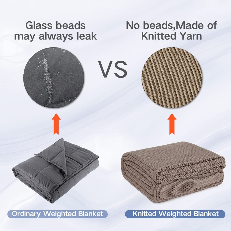 - WON'T LEAK BEADS:When using a regular weighted blanket, we always worry about waking up to a bed covered in glass beads. Now with this knitted weighted blanket, you can enjoy the comfort of a blanket and never have to worry about leaking beads