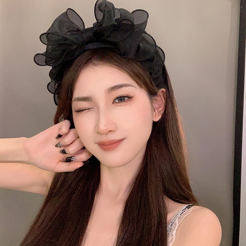 Guojiang Retro-Fashion Black-Bow Headband HairBands Elegant Mesh HairBand Black Hair Accessories For Girls And Ladies Hair Accesso
