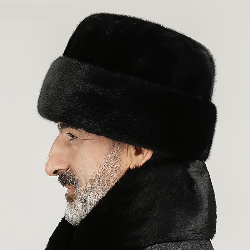 GUOJOZO Trapper Hat Winter Russian Ushanka Hat Men Faux Mink Fur Cossack Hat Winter Aviator Earflap Hat Windproof for Hunting Skiing (UK, Alpha, M) Black