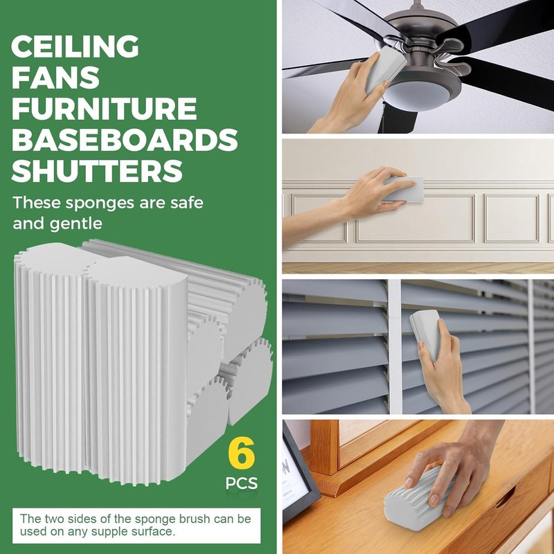 GUOYOU 6 Pack Damp Clean Duster Sponge, Reusable Dust Cleaning Sponge, Sponge Cleaning Brush,for Cleaning Blinds, Glass, Baseboards, Vents, Railings, Window Track Grooves(Grey)