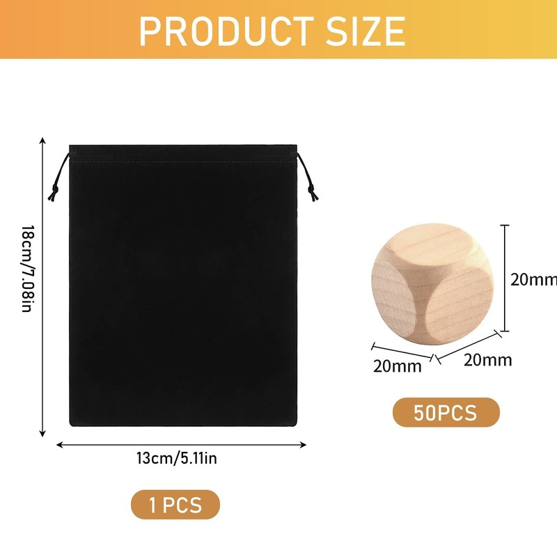 - Packing list: you will receive 50 pieces wooden cubes blank, enough quantity to meet your DIY needs well. Each cube is about 20mm in size, small and portable, easy to hold and carry. Also includes a black short plush storage bag (13 × 18 cm) so you can store wooden cubes better.