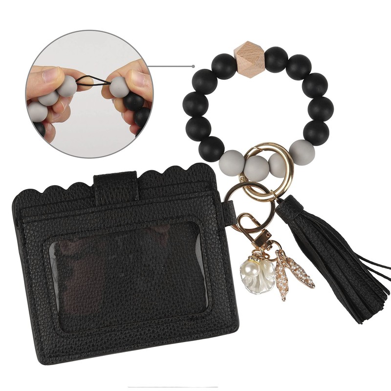 - Unique Design: Cute wallet Can holder ID badge,credit cards, driver license and a little cash in it. silicone bracelet can holder car key, etc. Meet the daily needs, Easy to go out shopping. key ring fit onto most women's wrists. Various color Can choose, Will definitely make you eye catching and would brings you lots of compliments.