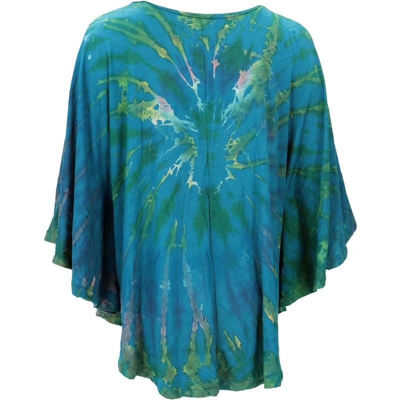 GURU SHOP Batik Poncho, Tunic, Kaftan, Maxi Blouse, Women, Red, Synthetic, Size: One Size, petrol, One size