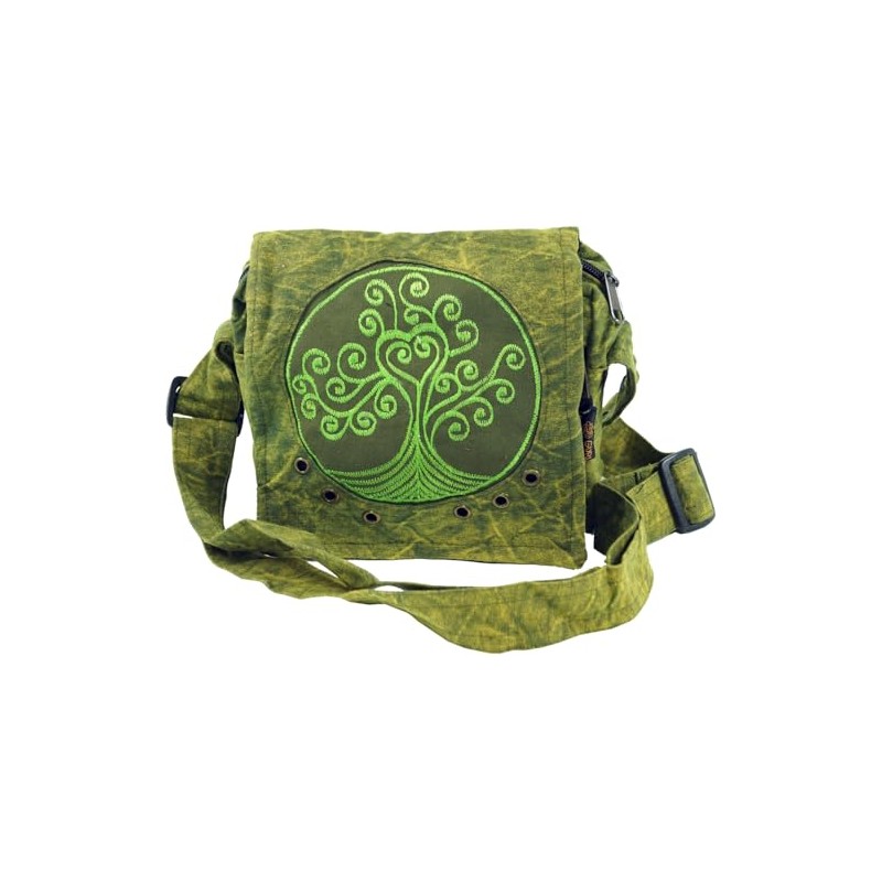 GURU SHOP Ethno Shoulder Bag, Nepaltsche Stonewash 'Tree of Life', Petrol, Unisex, Adult, 20 x 20 x 15 cm, Green, Unit size