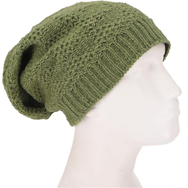 GURU SHOP Hand Knitted Long Beanie Hat, Lined Wool Hat, Men/Women, Grey, Wool, Size: One Size, Light Olive Green, Unit size