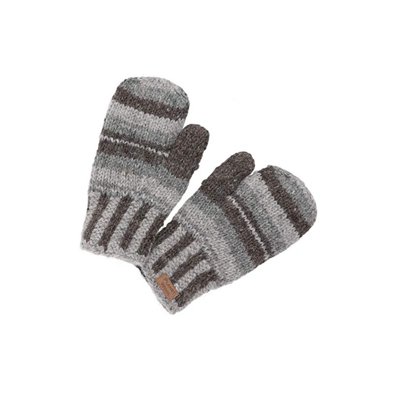 GURU SHOP Hand Knitted Mittens Striped Wool Gloves, Gloves from Nepal, Men/Women, Grey, Wool, Size: One Size, Petrol/Green