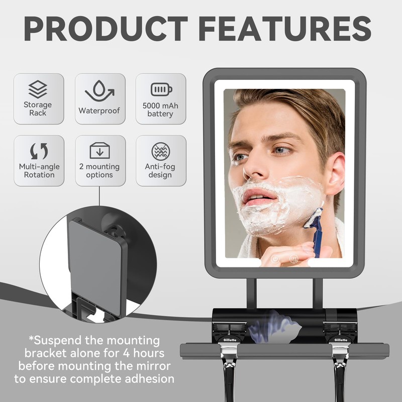 - 【Heated Shower Shaving Mirror】 Our smart heating chip warms the mirror for shower in 3 minutes to block fog instantly. Enjoy crystal-clear visibility for shaving or haircut routines, even in steamy showers.