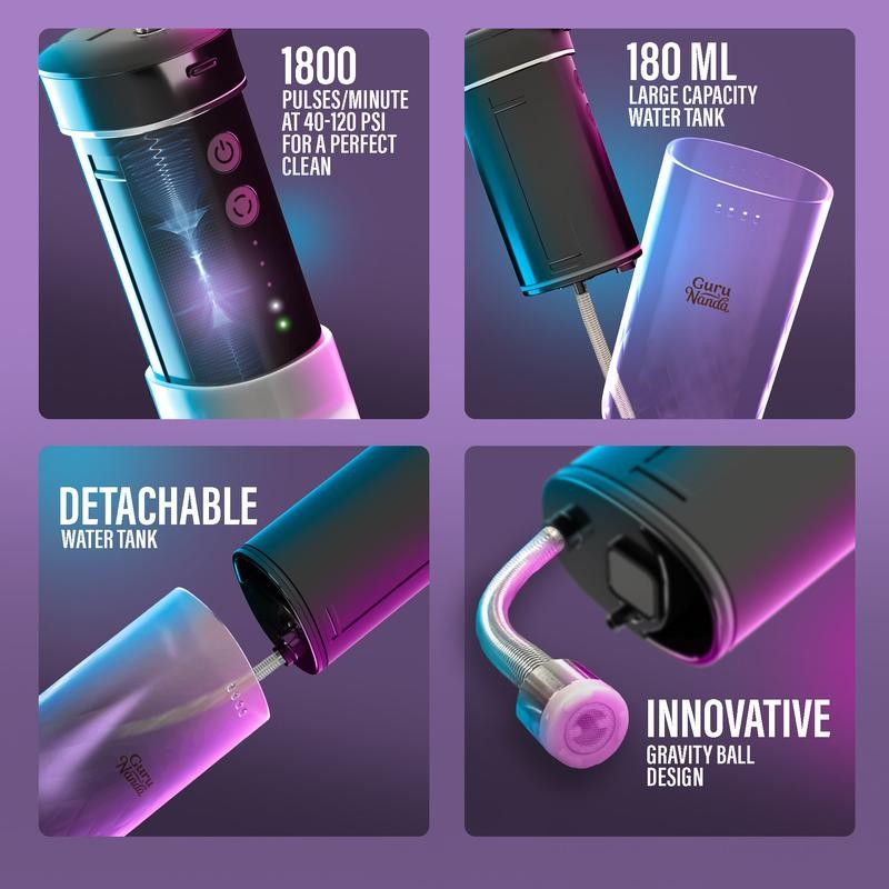 - GuruNanda Compact Dental Water Flosser - Travel Size Oral Irrigator with Smart Timer & 2 Floss Tips - 180ml Tank