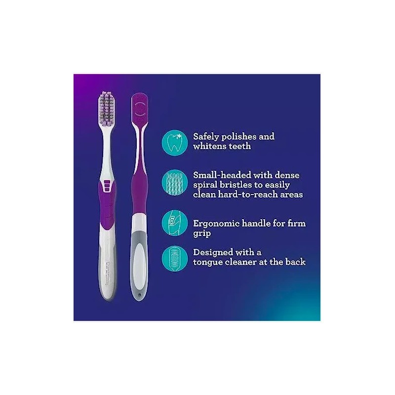 Let your teeth experience whiter whites with the Gurunanda Spiral Whitening Bristle Toothbrush! These affordable whitening bristles get between teeth to dislodge plaque and food without damaging your gums. This soft brush removes stains, giving you a whiter smile with larger handles without strain.