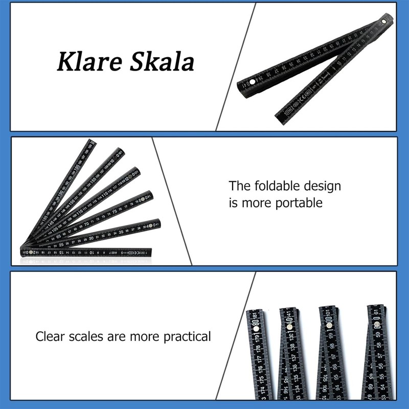 - Meter rod with duplex division: Thanks to tongue and groove, the scale is firmly lockable, durable and can withstand loads for hobbies, DIY enthusiasts, carpenters, craftsmen and architects