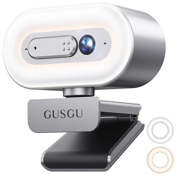 GUSGU G920 2K Quad HD Webcam for PC, Auto Focus, with Microphone & Light & Privacy Cover, Web Camera for Desktop Computer/Laptop/MacBook, USB Streaming Camera