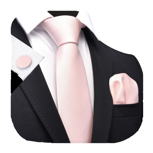 GUSLESON Blush Pink Ties For Men Solid Wedding Neckties and Pocket Square Cufflinks Sets (0789-38)