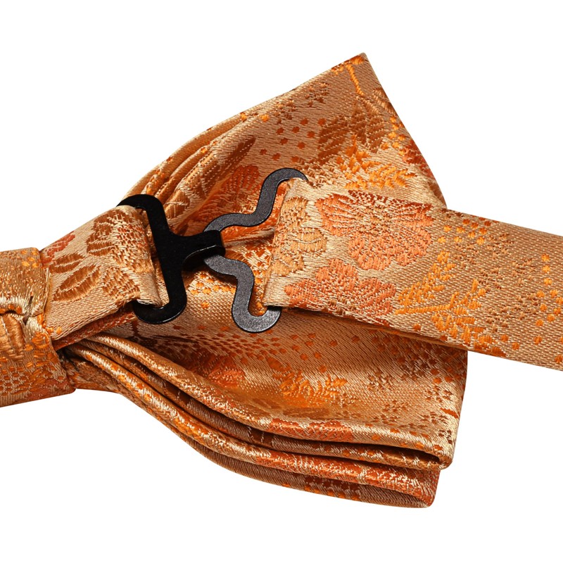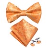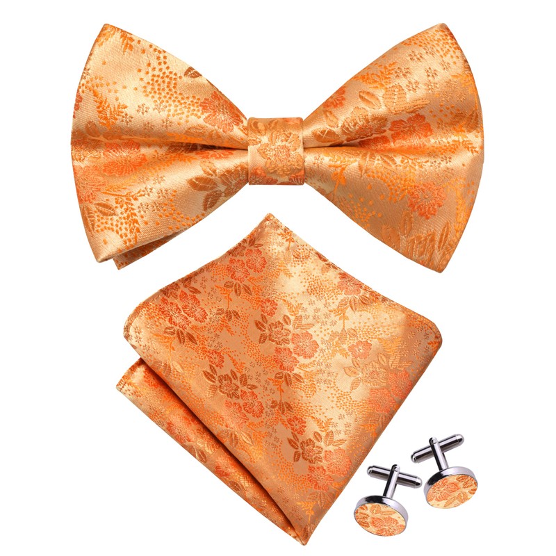 GUSLESON Orange Bow Tie and Pocket Square Set for Men Red Floral Pre-Tied Bowties Cufflinks for Wedding (0493-14)