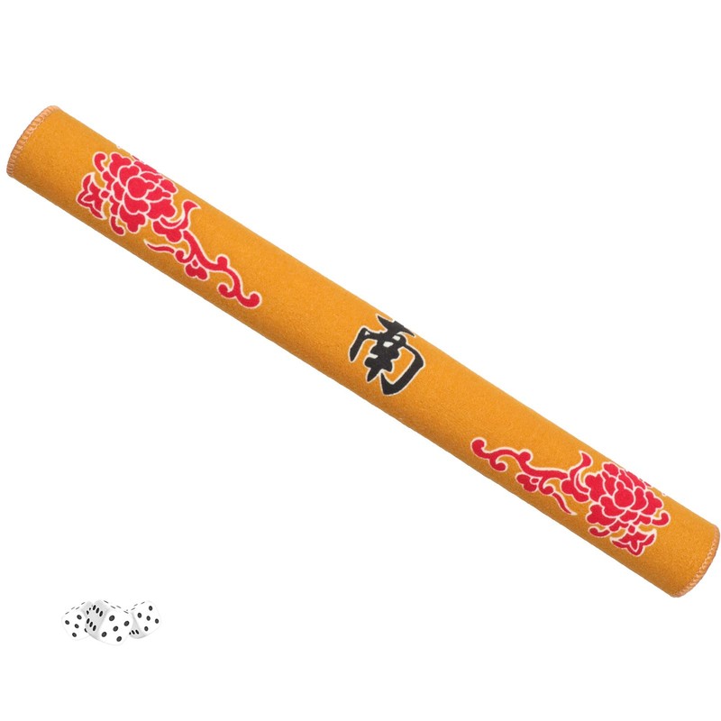 GUSTARIA Mahjong Mat with 3 Dice, Mahjong Table Mat for Poker, Card Games, Board & Tile Games, Anti Slip and Noise Reduction Table Cover (Yellow, 31.5 inches)