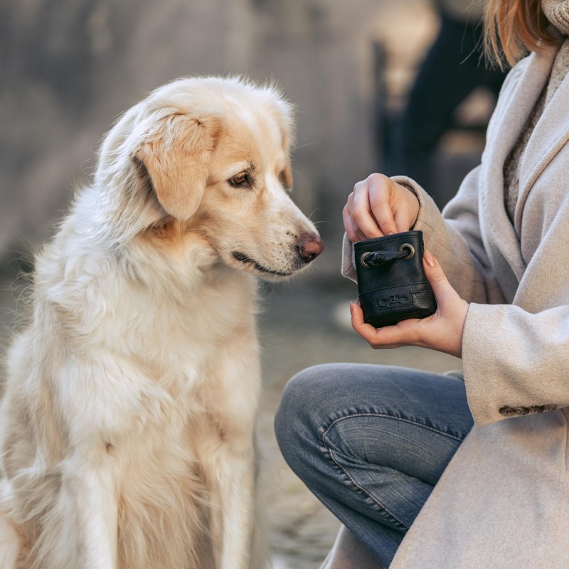 Gusti Leder Leckerlitasche Alaric - Futterbeutel Hund Vierbeiner Schwarz Leder