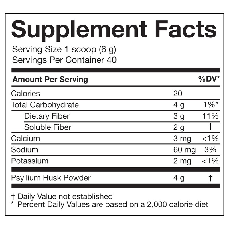 - QUALITY INGREDIENTS - Enhance your diet with this fiber supplement containing 0g of net carbs and 0g of sugar. Our daily digestion supplement has 40 servings with 20 calories and 4g of Psyllium Husk Powder per serving.