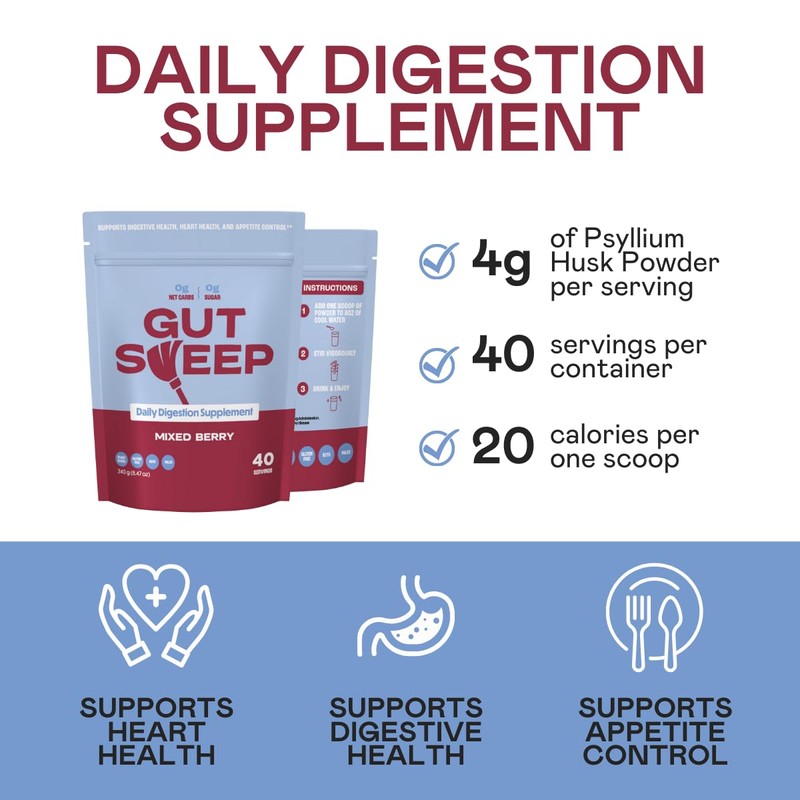 - GUT SWEEP - Enjoy all the benefits of our Gut Sweep, fiber supplement in powder form. This product is a daily use Psyllium Husk fiber supplement that can help support healthy digestion, regularity and appetite control.
