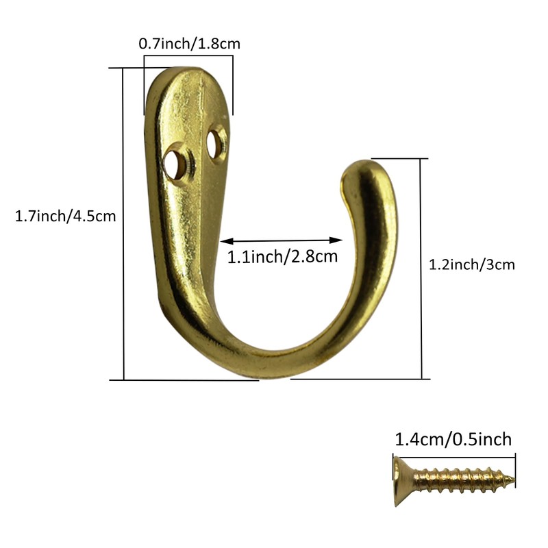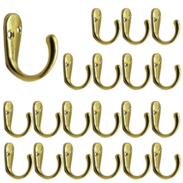 Gutapo Coffee Cup Hooks 20pcs Polished Brass Hooks Door Wall Closet Mounted Single Hook Hangers for Robe Coat with 46pcs Screws