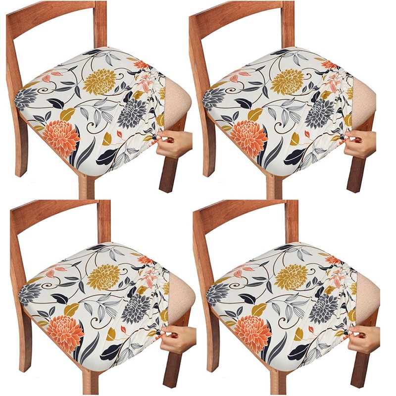 - DURABLE FURNITURE PROTECTOR SLIOCOVER:Spandex seat covers for dining room will safeguard your chairs from spills, stains, daily tear and scratch, a great choice for homes with kids and pets. SearchI Dining chair cushion slipcovers with fashion printed pattern design, it is a great chair seat protector that combines practicality and decoration, you will absolutely love them.