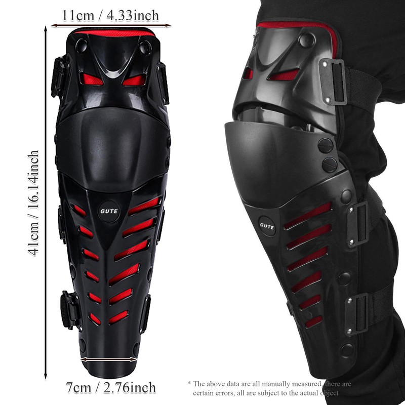 Gute Knee Pads,Adjustable Long Leg Sleeve Gear Crashproof Nonslip Protective Shin Guards for Motorcycle Mountain Biking-Red