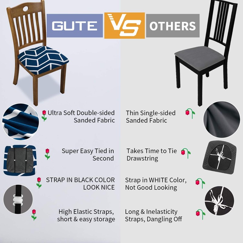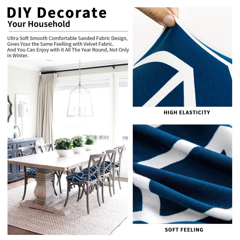 - PREMIUM CHAIR SEAT COVERS: 92% polyester and 8% spandex. Stretchy enough to fit most of dining upholstered chairs snugly. High-grade fabrics makes the chair cover durable, wrinkle-resistant, anti-pilling, soft and comfortable.secure kitchen seat covers firmly in place with the sewn-in elastic band and 4 straps to avoid slipping, practical for your home decor.