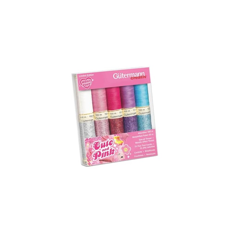 Gütermann Creativ Cute and Pink Sewing Thread Set – Universal and Metallic Th...