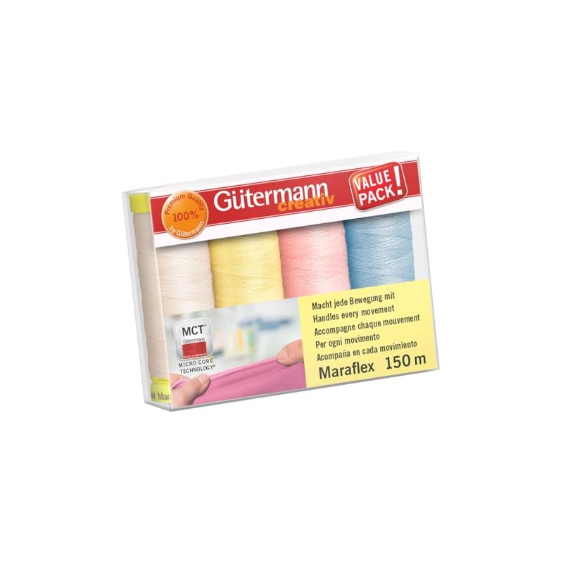 Gütermann - Gütermann Creativ Polyester (4 x 150 m) Maraflex Elastic Sewing Thread Set, Colour Variation 3 - 1 Set