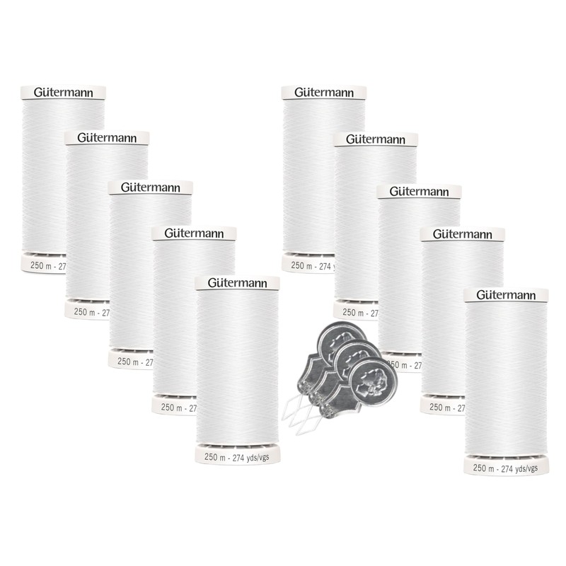 Gutermann Invisible Thread 250m/274yd (736619), 10-pack, bundled with Bella's Crafts Needle Threaders. Each spool of invisible thread is made of 100% polyamide (filament nylon) that offers strength and flexibility to your handmade sewing projects and easily blends with all fabrics. They are ideal to use for quilting, sewing and crafting fabrics. Create a finished look for your creations using these fine and tear-resistant invisible threads.