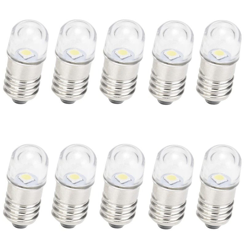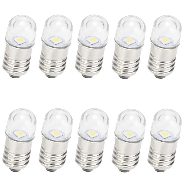 GutReise AC/DC E10 Bulbs, Pack of 10, 6 V, Cool White, E10 Replacement Bulbs, Miniature Screw LED Bulbs, 0.5 Watt, 65 lm (6 V, Cool White)