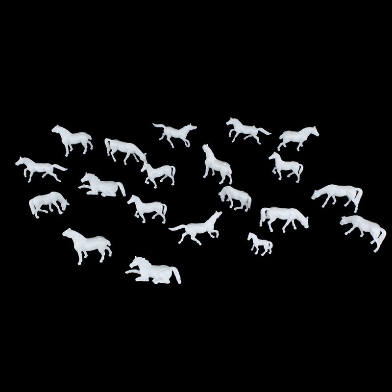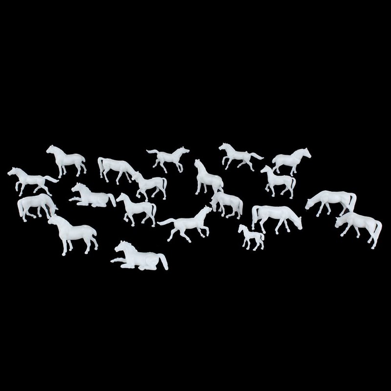 - Pack of 20 unpainted H0 horses made from a white plastic material.