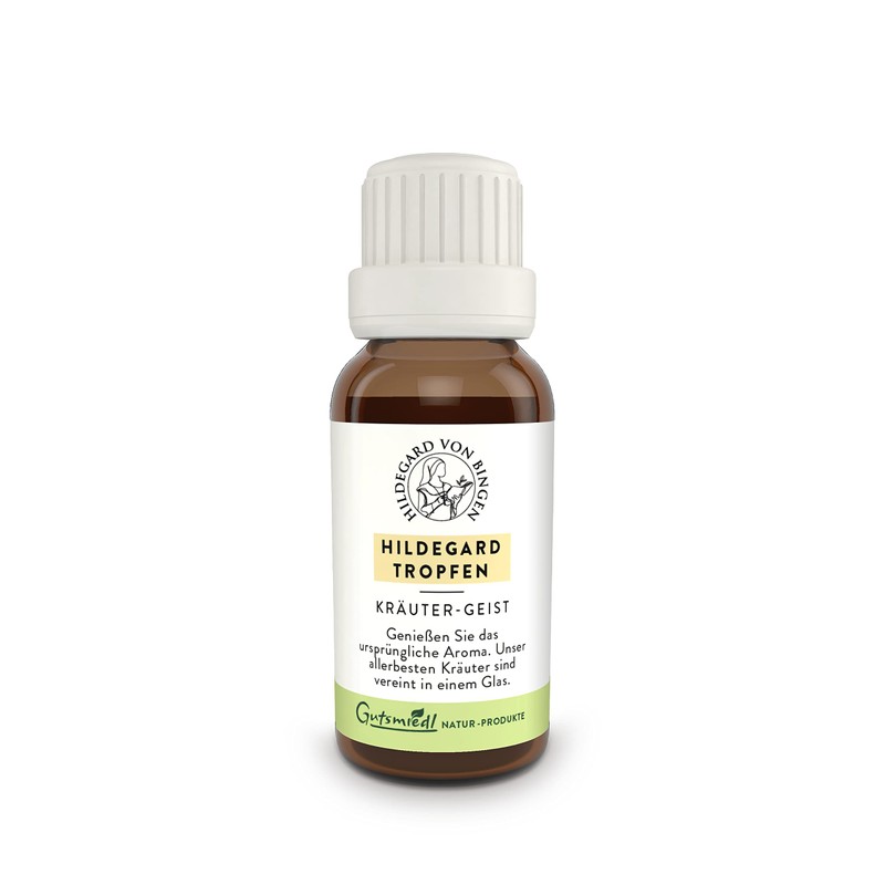 Gutsmiedl – Hildegard Tropfen mit 5 stärkenden Heilkräutern nach Hildegard von Bingen – Notfalltropfen mit Habichtskraut, Galgant, Kampfer, Fenchel & Veilchen – 100% natürlich & Made in Germany (20ml)