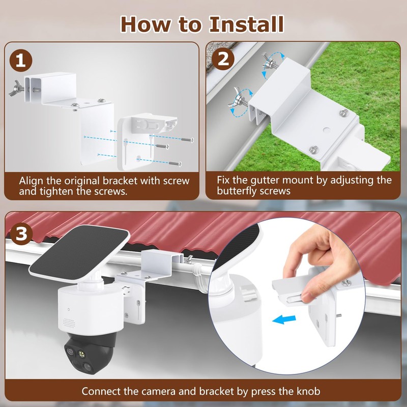 - 【Adjustment】Our gutter mount keep your eufy security solocam s340 camera flexible adjustment, 360-degree swivel and 180-degree tilt. Suitable for most gutter within 0.15-0.78 in thick.