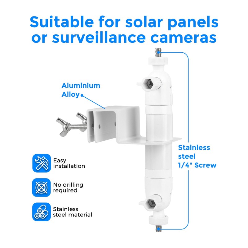 - 【High Quality Gutter Mount】 - This universal mount is designed with a standard 1/4"-20 threaded screw connection and works with most small security cameras and solar panels. Our gutter bracket is made of high quality strong and durable material, wear-resistant, stable and can withstand harsh weather conditions.